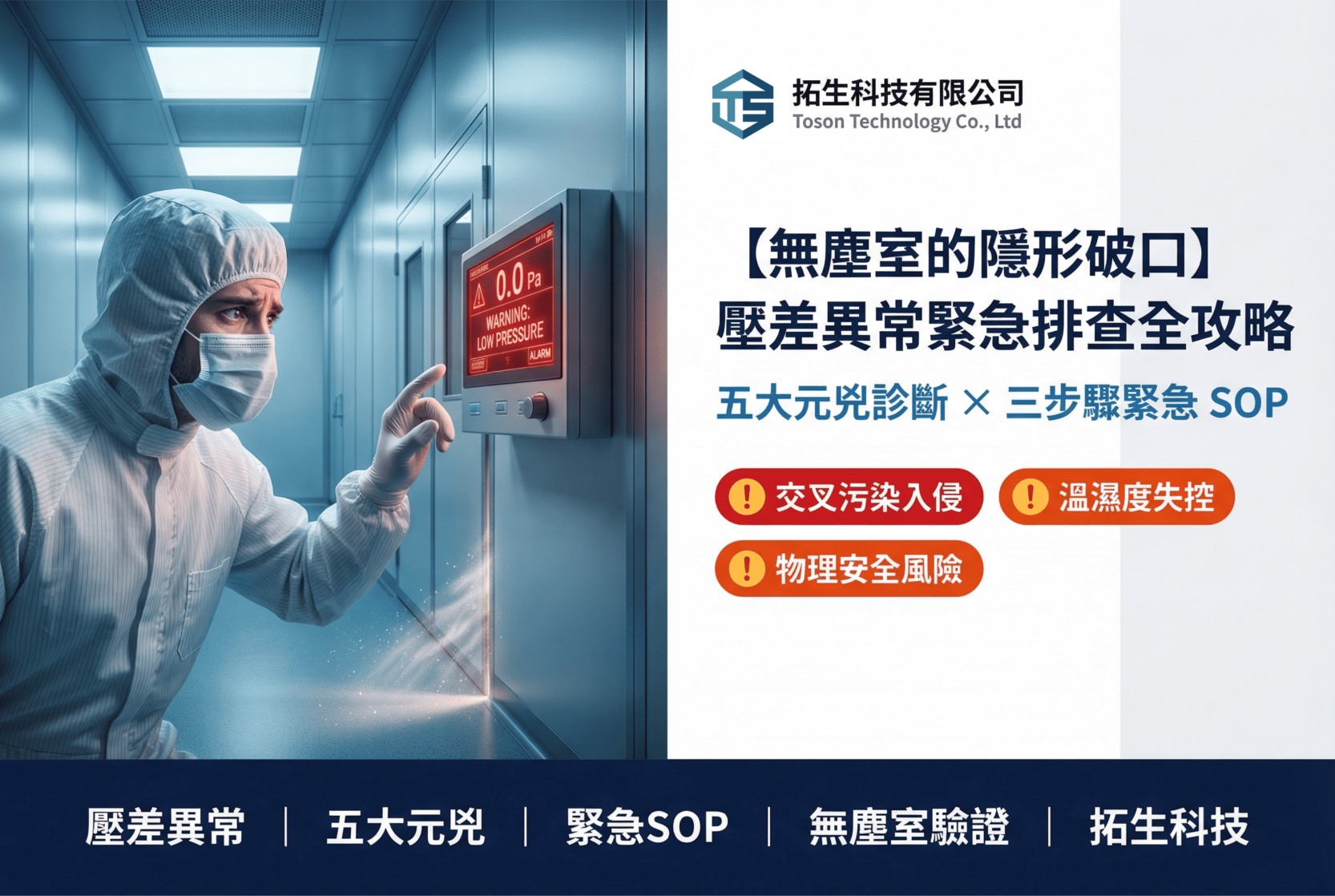 如果您正面臨難以解釋的壓差波動,或是即將面臨嚴格的法規查廠,請立即與拓生科技聯繫。我們隨時準備為您的無塵室進行一場全面且深度的「壓力測試」,讓您的潔淨屏障堅不可摧。
