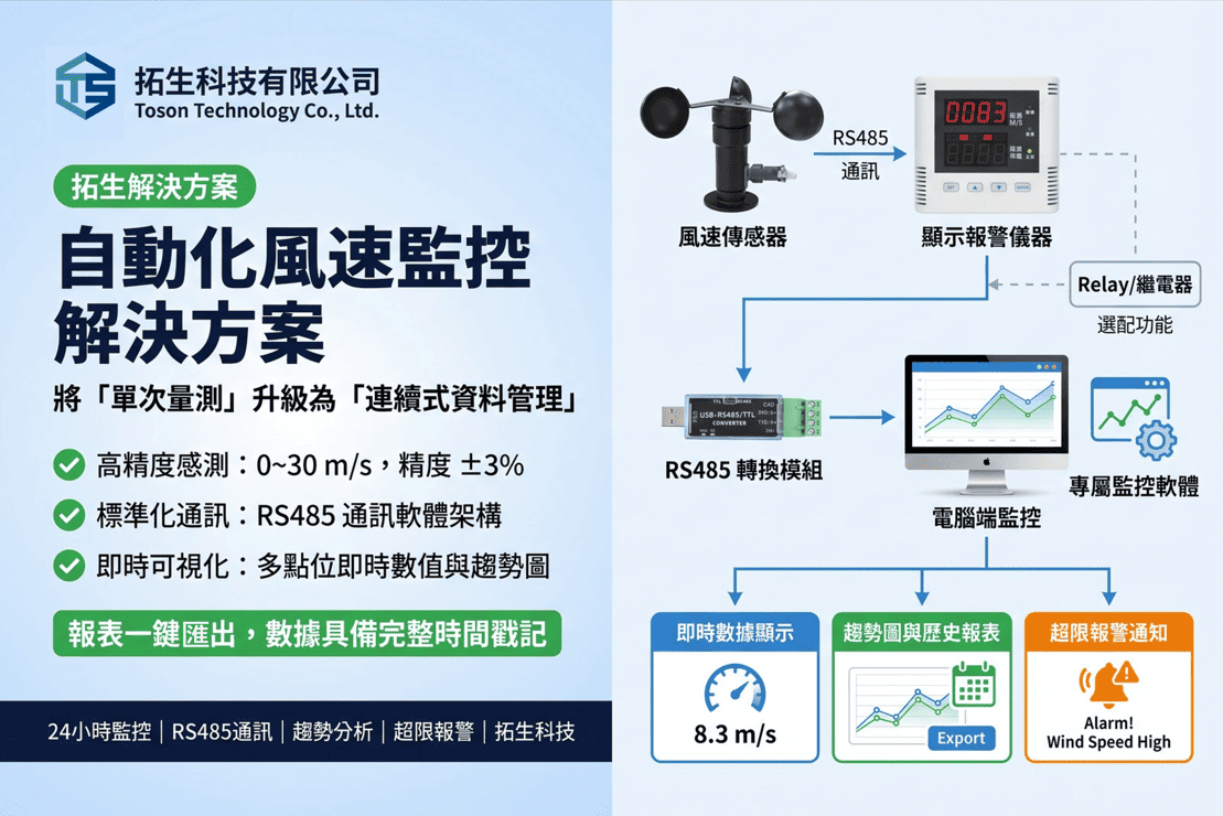若您有建廠專案需求或正準備年度設備自動檢查,歡迎諮詢拓生科技,我們將協助您建構最穩固的風速監控防線。