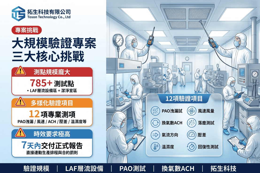 透過本次案例證明,只要具備專業的專案管理能力與嚴謹的流程控管,驗證品質與交付速度可以並存 。拓生科技致力於讓潔淨環境驗證成為企業降低風險、支撐高品質管理的最強後盾 。